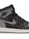 The Air Jordan 1 Retro High Rebellionaire draws inspiration from the original Air Jordan 1 Shadow with its simple black and grey color blocked upper. Printed on the leather construction, graffiti style text covers the upper. At the base, a white and grey Air sole completes the design.